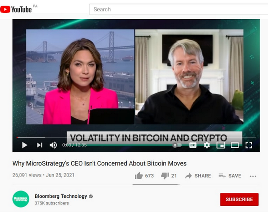 Bloomberg Technology YouTube Chanel that has 374K subscribers that are investors explain:“Why MicroStrategy’s CEO Isn’t Concerned About Bitcoin Moves”